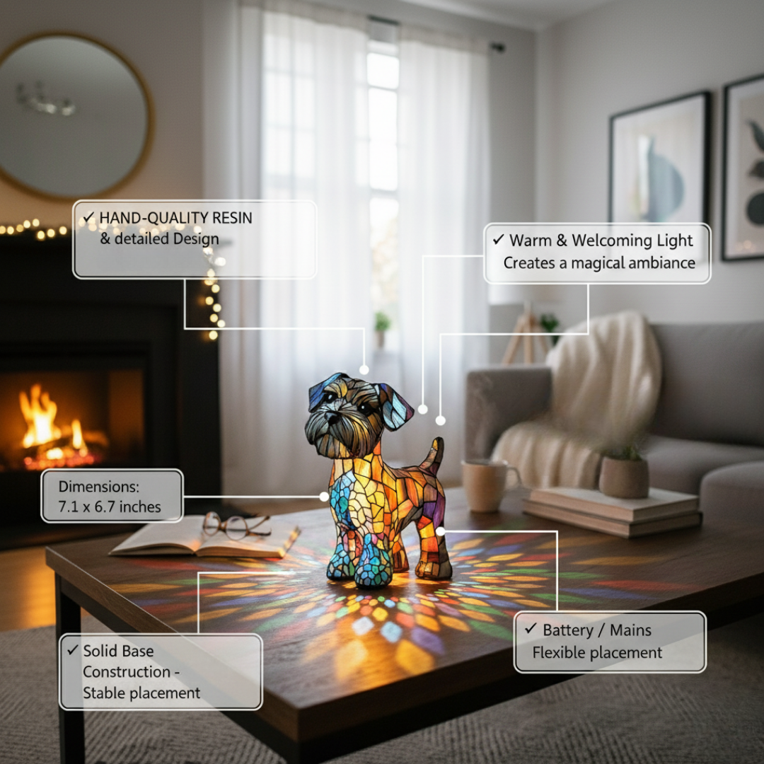 Nous avons perdu Caramel en mars. Un golden retriever de 9 ans. Il était dans chaque pièce de cette maison, et puis soudain, plus rien. Ma fille a trouvé la boutique de Pierre et nous avons commandé la lampe golden retriever. Quand elle est arrivée, on l'a posée à sa place sur le canapé et on l'a allumée. Elle est encore là chaque soir. Merci, Pierre.