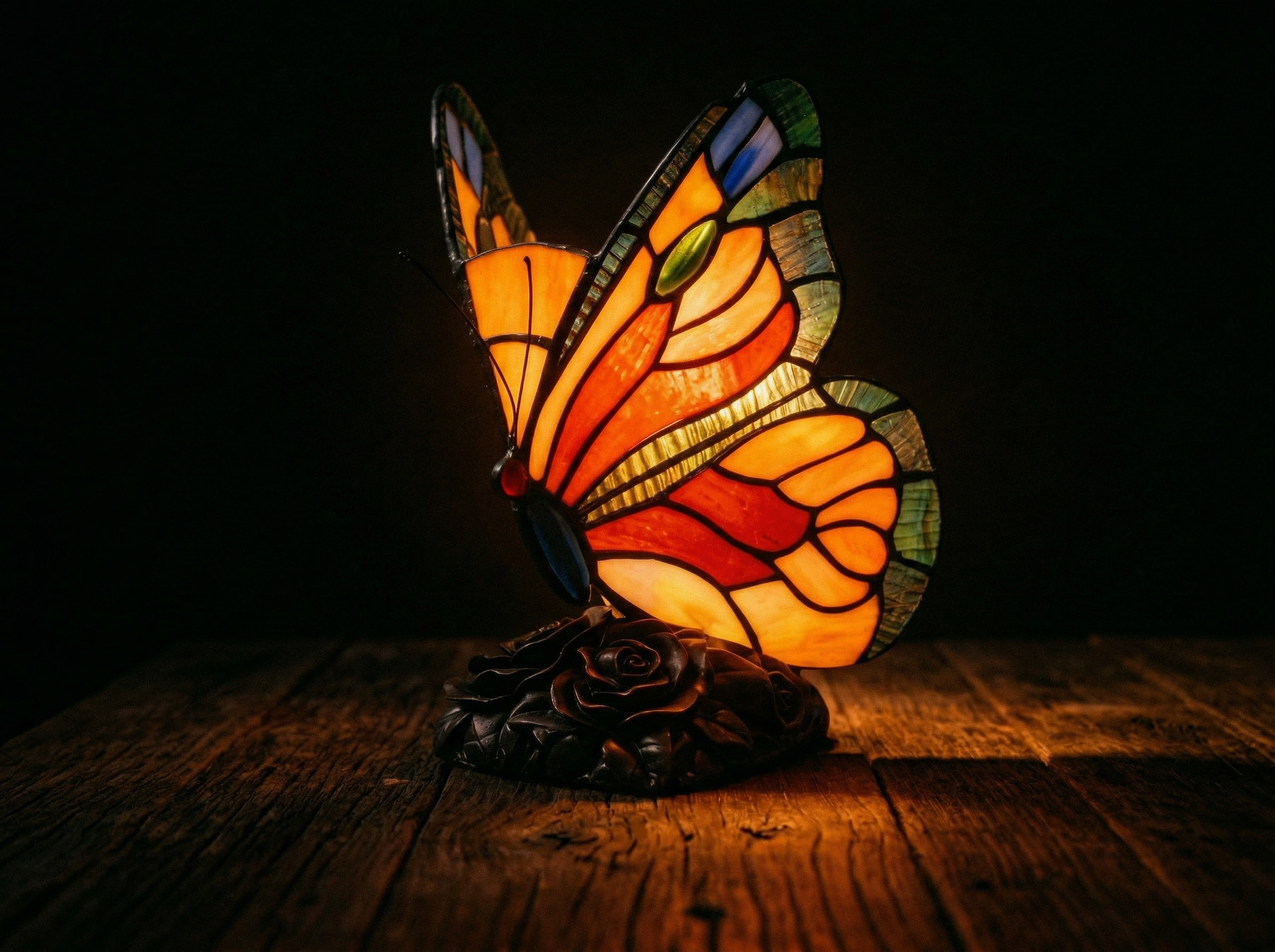 Devant une lampe papillon.